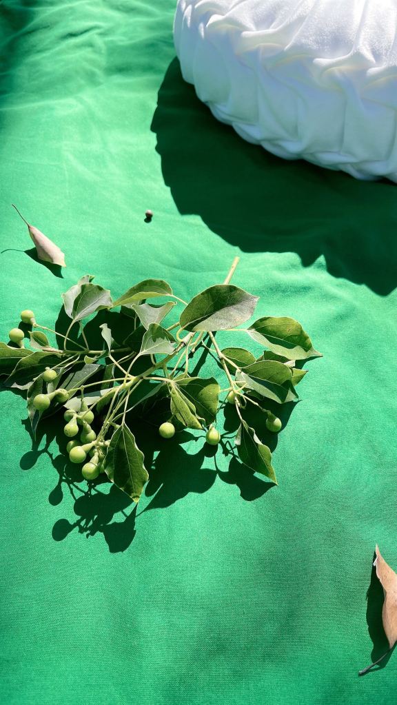 照片中这串已经干枯的树枝,就是2021年11/11门户那天,我在树下静坐时,从树梢上掉落在我面前的那串带着果子的枝叶,而且是那天唯一一串掉落的树枝,它是如此的光鲜亮丽充满生机,带着树木精灵的美丽和植物王国的信息,从高处掉落在我面前,陪伴我的静心时刻,让我感受到宇宙的爱无处不在,神圣的祝福无处不在。那种被无条件之爱包围着的感觉,是一种深刻的喜悦和幸福的体验。那天结束静坐,离开那个和平空间时(因我经常在此静心、冥想,发送光和爱的能量给这里的树木和万物,以及和地球母亲及太阳之父连接时所接引和承载的神圣能量,让这个区域的磁场获得净化,振动频率获得提升,处于这里,让人的内心感觉平和与安宁,喜悦与安心,那是一种家的安全感。因此我把这里称为和平空间),我把这串树枝带回家,并放置在圣坛上,以表达我对它的降临和同在的尊重和感恩。