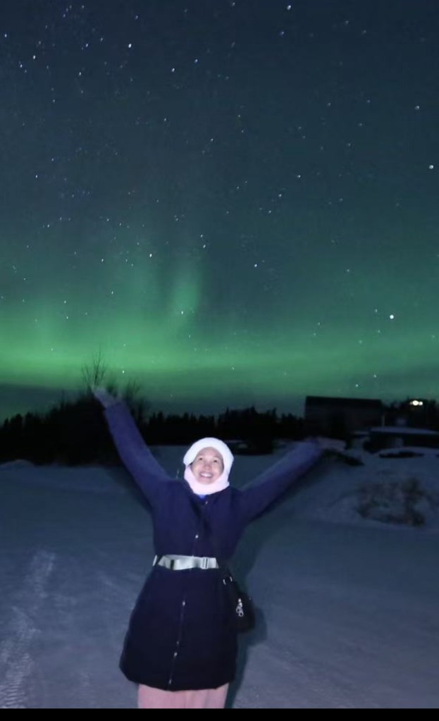 在这虚实之间的时空交汇处,一时竟忘了,我跨越千山万水远道而来,是为一睹极光的瑰丽和风采。而后随着导游一声激动的呼喊:“来了!极光来了!”,我的意识立即回到了当下。这句简单有力的话胜过千言万语,那就是我们在等待的奇迹,它像是一个邀请,又像一个承诺,更像一个指令,蕴藏着丰富的寓意,令人为之热血沸腾,随即投入这场与极光的互动与共舞……