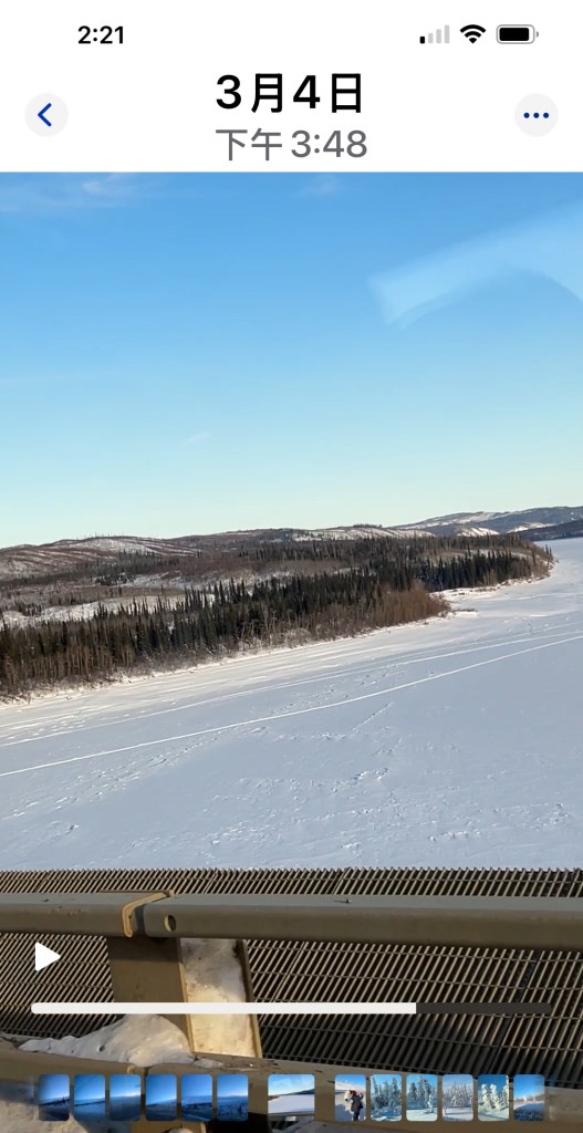 最美的相遇,往往在一瞬间,而且毫无预期。就当我沉浸在沿途美景的观赏中时,忽听导游说:“这就是育空河,看,河面还结着冰”。我的意识回到当下,就在目光从右边的高远之处收回,触及地面的刹那,一道白光映入眼帘,是结冰的河面,Wow!这就是育空河啊!太美了!我不由得脱口而出,自然而然,不加掩饰。这是对自然之美的由衷赞叹,爱的喜悦能量瞬间弥漫。那宽阔的河面,闪亮的冰雪,河道弯曲延伸,迂回曲折,像洁白的飘带,又像圣洁的天使,婉转于群山怀抱,舞动于自然之间,如此静谧,如此安宁,如此美丽,如此神奇!来不及观赏,我忙着拍照,透过镜头欣赏她的壮丽,留下她的气息。虽然短暂相见便匆匆离去,但她带给我的震撼和启示,萦回至今。