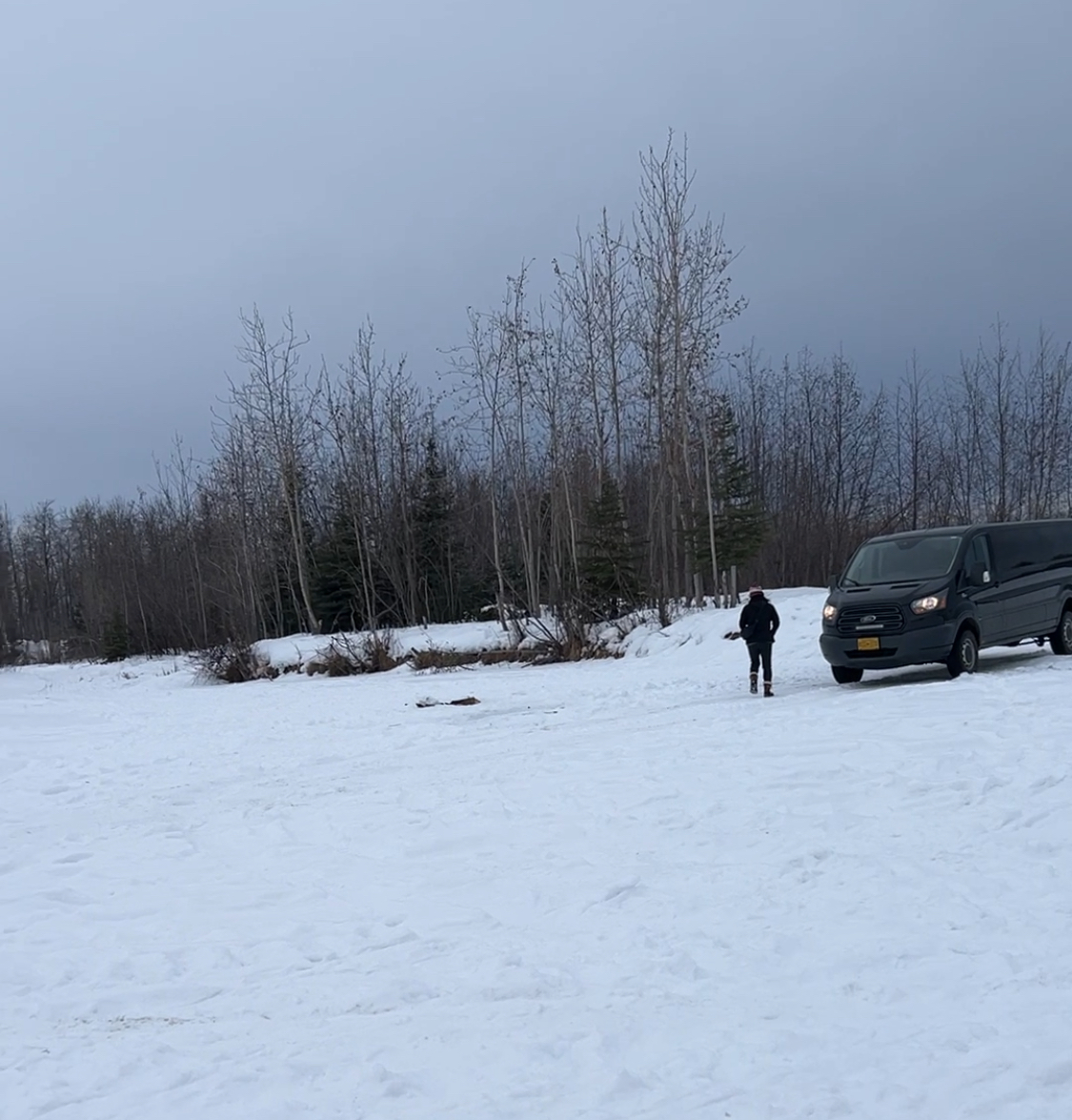 但这并不能阻挡我跨出的脚步,我在冰河上随意地走走看看,拍拍照,留下美景和倩影。这一刻,时间属于我,世界属于我,风景属于我,一切属于我,因为一切都是我,我就是一切。举目望去,冰河宽阔,岸边的风景连着远处的群山,像一幅淡淡的水墨画在天地间展开,虽略显苍凉,却也透着大气和从容,那是一种苍劲之美。而脚下看不见的河流,又有多少或冬眠或活跃的鱼虾在等待着春暖花开?生命是一首歌,歌者是我们自己。而塔纳纳河的歌,是神奇的水元素和美丽的水生物组成的交响乐。此刻我就站在塔纳纳河上,聆听她的呼吸,就像触摸大地母亲的脉搏和气息。