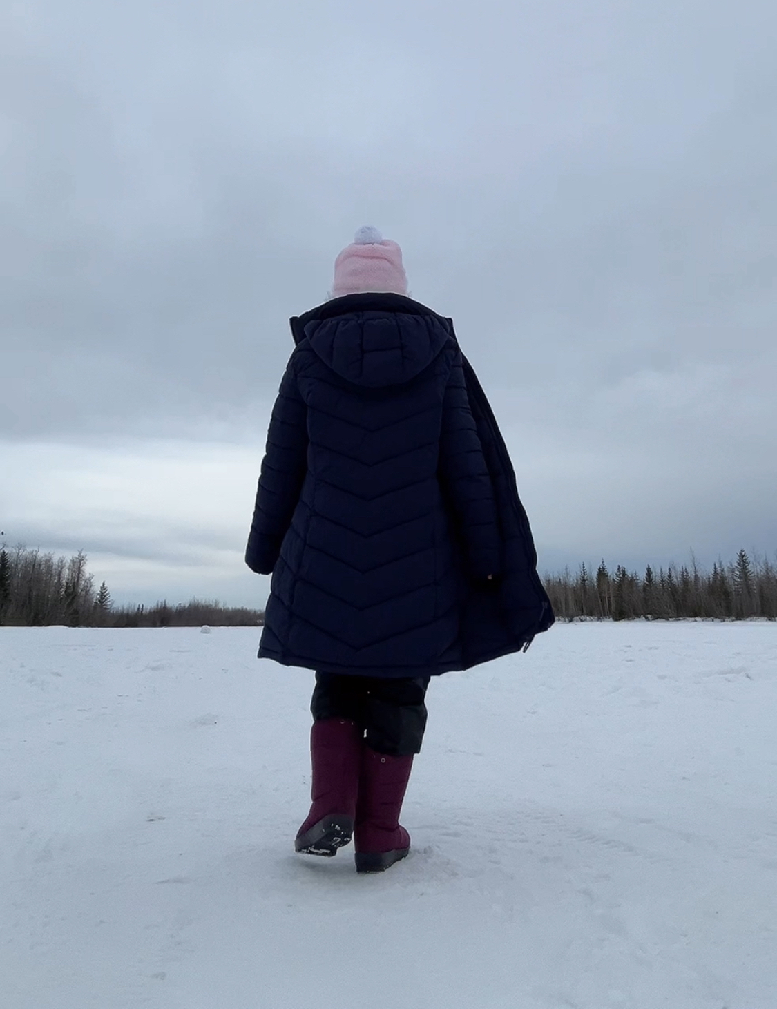 正当我想返回帐篷内坐一会儿取取暖时,内在传来一个声音:“去舞蹈吧”!我一惊:“舞蹈?在这天寒地冻的冰面上跳舞?这可能吗?我能做到吗”?我感觉不可思议,也不太可能,虽然我平时喜欢在大自然中随心而动地旋转身体,舞动四肢,但这里是严寒雪地不说,还穿着厚厚的羽绒服、抓绒保暖裤子外加防风防水的裤子,以及无法灵活运动的雪地靴,这些都是很大的限制,怎么能舞蹈旋转呢?我自己都不敢相信自己能够做到。但内在的声音是一个指引,是一股推力,来自那位深藏不露的伟大存在,因此即使头脑顾虑重重,我也会被推动去采取行动。