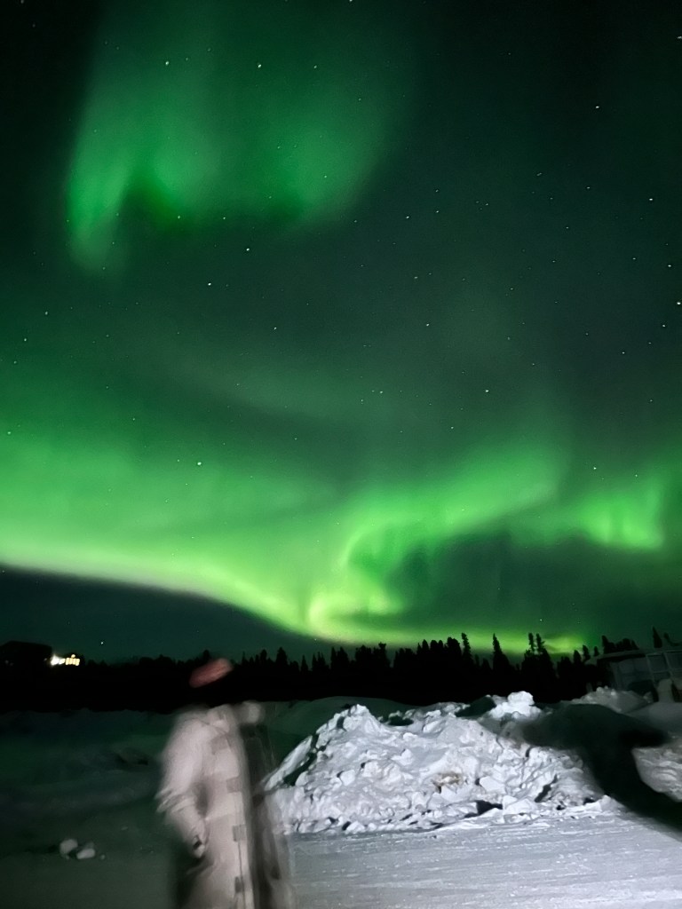 结束了惊心动魄的冰钓活动,离开了神奇美丽的塔纳纳湖,在日式饭店用了晚餐,这是我们第三次在这家饭店用餐,不是因为特别喜欢那里的菜式,而是因为没有更多的选择。晚饭后稍作休息,就准备去机场,启程回家,结束旅程。这一刻,多想停留匆匆的脚步,再看一场绚烂的极光,再感受一会阿拉斯加的气息,因为这片土地有着奇特的频率,虽然寒冷令人难以接受,却有着大自然神妙的馈赠,那未经雕琢的生态环境,散发着原始的壮美力量,让人震慑与臣服。这就是阿拉斯加,一个终其一生都做不完的梦,一个来了就无法忘记的地方。