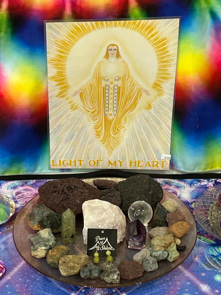 从雪士达山回来,不知不觉已过去两周。在这段时间里,我除了做外在和内在的清理工作,即断舍离,把不再需要的、不再服务于扬升的陈旧能量和事物移除舍弃,为更高的频率空出位置,为全新的能量腾出空间。在内在力量的推动下,我整理了家中的圣坛,打扫了摆放水晶的多层置物架,清洁了所有的水晶并重新排列以匹配新频率,然后创建了一个微型雪士达山能量场,把从雪士达山带回来的神圣物质——火山石、水晶、火山灰、鼠尾草和灵性图腾,按照内在的指引把它们组合排列成一个能量阵(我会在后续的章节中分享这些圣物的来源和相关信息),开启星际门户,锚定扬升之光。这是这趟旅程的启示和指引,它的意义远超表面所见,它代表着深度的连接、合一之光与协同工作的展开。此外,就是投入生活,享受当下,跟随流动,随心所欲,处于休闲放松的状态,以便把从雪士达山带回来的能量锚定下来,扩散到周围,提升所在区域的振动频率,这也是此次圣山之旅的一个任务,即净化提升自己,更好地服务世界。与此同时,还接受与整合了8/8狮子座门户能量,为迈向更高的意识阶梯积蓄力量。这是一个休憩、整合、内化与扩展的过程,看似松散无为,却在做着重要的工作,身体处于繁忙的状态,它不仅要吸收新能量,转化旧能量,还要更新自己的系统,升级自己的模板,让自己从碳基转变为晶基,成为更纯净的光之容器。这是一个身体圣殿的建造过程,是一个灵性炼金术的宏伟工程,要把灵魂之光和高维自我融合进入这具身体里,成为行走世间的永生不朽的神。