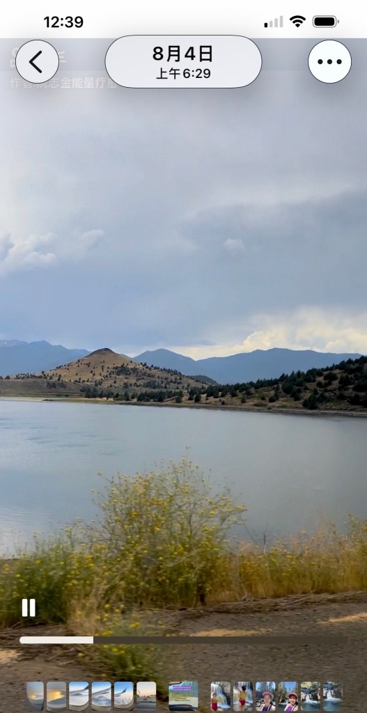 雪蒂娜湖(Lake Shastina )坐落在雪士达山脚下,是一座巨大的水库,拥有广阔的自然美景和令人叹为观止的高山景色。湖岸线绵延数英里,湖面宽广,视野开阔,风景秀丽,空气清新,环境清幽,宁静祥和,水面倒映着巍峨的雪士达山,给人如诗如画的壮美之感。我们到达时,已是下午1点多,此时天空阴沉,一大片乌云在雪士达山顶上凝结,好像一场大雨即将来临,又像是银河舰队在集结待命。车子就停在雪蒂娜湖边的公路上,站在路边可以全方位观赏湖景。雪蒂娜湖如一幅流动的画面展现在眼前,湖水清澈湛蓝,晶莹剔透,映照着阳光云朵和群山。湖中有一个岛屿,景色壮丽,令人称奇,是户外运动爱好者的游乐场,也是野生动物的宁静庇护所。虽然此时湖水下降,湖面看起来没有水量充盈时的宽广辽阔,但湖岸的景色依然优美宜人,远处的群山依然荡漾水中,阳光洒在水面上,波光点点,闪闪烁烁,时光宁静,山峦静默,周围的鼠尾草和野花装点着湖泊山川,微风拂过,暗香浮动,心旷神怡,如痴如醉。