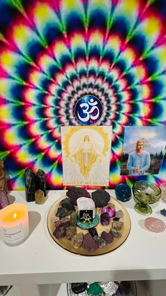 下午1点,我就开始聚焦于内,处于安静放松的状态,伴随着恭敬和喜悦,开始布置会场。这是一个神圣的过程,既是连接内在源头,也是祈祷祝福仪式。我的居所本就是光之殿堂,一是因为我自身辐射的神圣之光;二是家中摆放着很多水晶和灵性用品,散发着高频能量;三是几个月前我创建的微型雪士达山能量场,就像高我说的:“这是一个缩小版的跨维度星门”,以及我多年前就设置的意图,即让我的家成为源头之光的发射站。因此这不是一个普通的居所,而是一座神庙,透过灵视力会看见它璀璨辉煌,就像我在阳光下看见自己投射在反光物体上的彩虹光一样。不管你有着多么阴郁的心情或多么负面的情绪,但只要踏入我的家门,与我交流一会,你就会变得平静放松,眉头舒展,身心愉悦。这就是能量疗愈,在毫无觉察中,悄无声息地转化你的情绪,净化你的气场,提升你的频率,疗愈你的创伤,让你由内而外焕发光彩。而今天,我就要在这里,在这个小小的神圣空间,举行一场史无前例的盛大仪式,邀请星际能量,连接银河存有,为集体祈福和疗愈。这是今年最重要的一次集体疗愈仪式,也是我人生中第一次带领集体做星际链接的仪式,因此,不管是对我个人还是对集体而言,它都意义非凡。为了这样一个殊胜时刻,我投入了真诚和热情,注入了圣爱和祝福,为自己和集体营造一个和平、宁静、安全和有爱的空间。