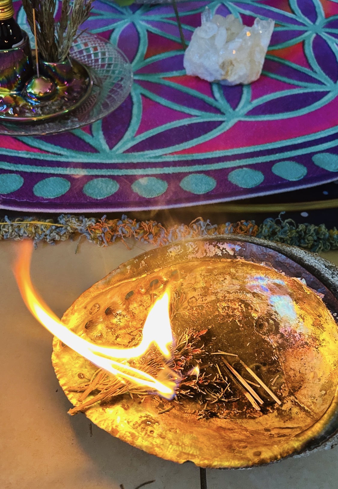 3,首先是净化环节,先点燃蜡烛和香,再燃烧雪松和雪士达山鼠尾草,结界空间,净化磁场,让我们全程不受干扰。请感受现场的氛围和能量,感受我们之间的连接与合一,(在能量层面,我们确实在一起,没有分离),让心中充满平静和喜悦。