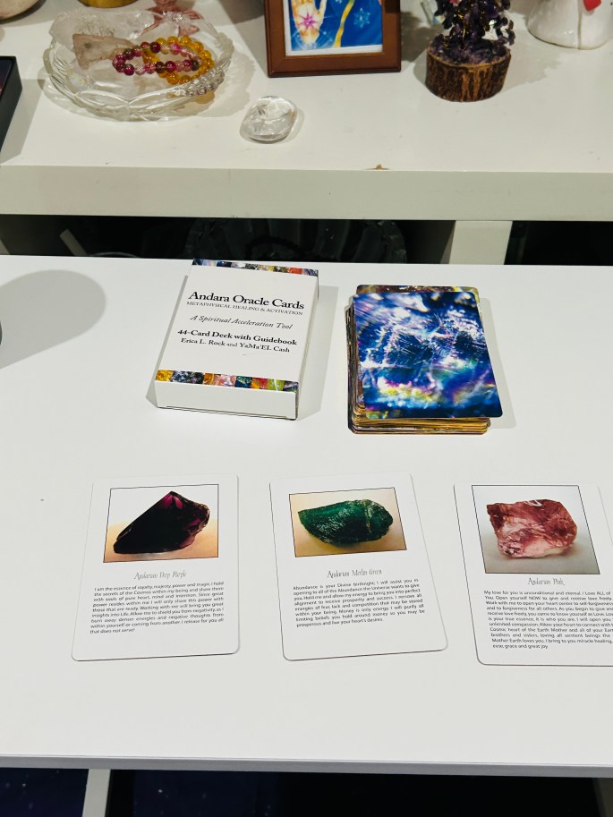 窗外的雨声滴答作响,像是天际奏响的天籁之音,疗愈和滋养着天地万物。柔和灯光中,我正看着短视频,突然被一个轻柔的 … 继续阅读雨声如歌中,安达拉神谕卡传递爱的祝福