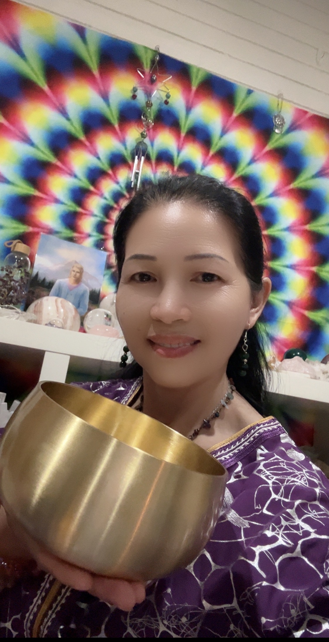 3/20春分门户疗愈仪式圆满结束了,现场只来了一个人,她是我的妯娌,墨西哥人,名叫Vicky.原本她的儿媳和她的朋友要一起来的,但因为临时有事来不了,所以就她一个人来了,而且她还迟到了。尽管如此,这次的仪式仍是充满了奇迹和惊喜,效果远超我的预期,也超乎她的想象。当仪式结束后,她快乐地分享了她的神奇体验,那脸上的笑容,眼中的光芒,言语的描述,手指的比划,语气的笃定,就是对我最高的奖赏。