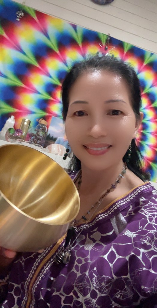 不一会,我把水晶钵放在垫子上,敲钵与磨钵交替进行。神奇的是,当我用木槌摩擦颂钵边缘时,发出的声音与以往不一样。几年来,我从未发现它的声音竟是这样悠扬婉转,有层次感,像旷谷回声,又像波浪起伏,像来自耳边吹过的风,又像来自遥不可及的天外,清澈空灵,余音缭绕,仿佛是在唱歌,难怪叫做唱歌碗(Singing Bowl)。瞬间觉得,这是一个能量场,光流在旋转,能量在流动,圣爱在舞蹈,灵魂在歌唱。而令我惊喜的是,磨钵的动作也变得前所未有的娴熟轻巧,不再像以往那样生涩和卡顿,而是丝滑无缝、轻松自如,声音均衡,没有突兀,就像一位演奏乐器的高手,在演奏着没有乐谱和歌词的永恒之歌。这让我意外又惊喜!这是怎么做到的?我并未刻意练习过,因为使用水晶钵时,我更倾向于敲钵而不是磨钵,因此磨钵对我而言是生疏的。而今天,竟无师自通,精通掌握,不仅动作熟练,还轻重适度,令声音舒缓平衡,没有刺耳噪音。这是多么奇妙的事啊!